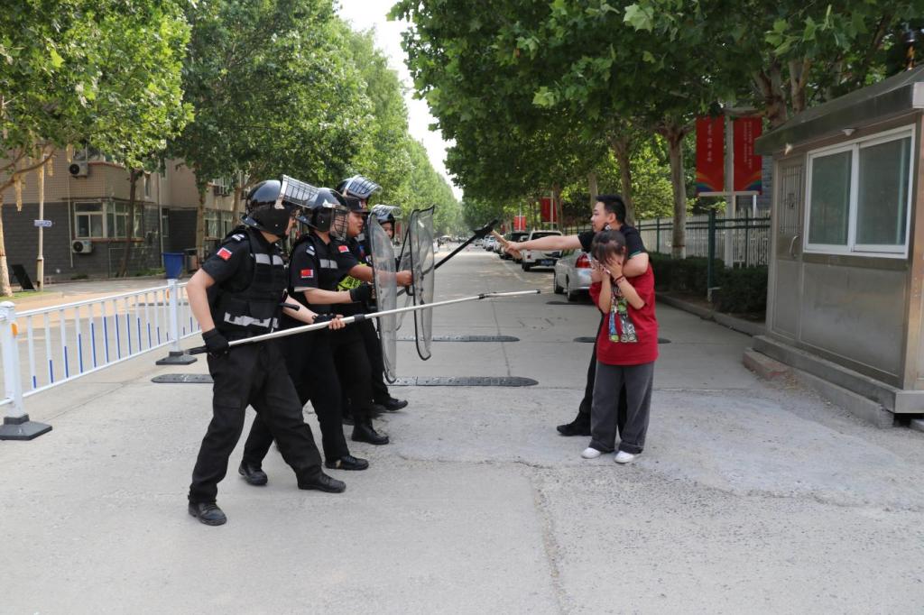 5月29日下午,根据学校安全工作计划,我校在东北门区域,模拟“可疑人员强行闯入并持械威胁”场景,对照《反恐防暴应急预案》,进行反恐防暴演习。