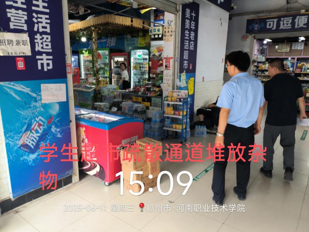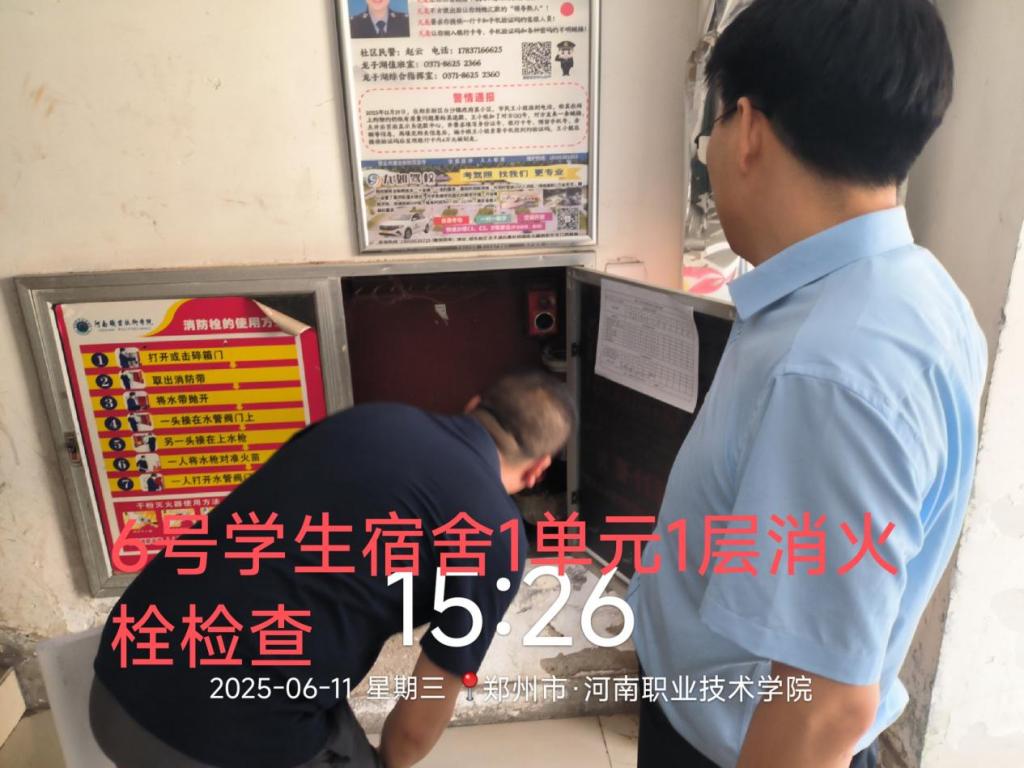 检查组与相关单位人员对接,分别到行政楼、教学楼、校园超市、附3号学生公寓、5号学生公寓、图书馆、河职佳苑以及安保队员宿舍等区域,检查消防通道畅通、疏散逃生通道畅通、智能设备运行、消防系统运行、楼顶及墙体附着物松动、学生宿舍规范用电等安全情况。对发现的安全隐患,现场督促主管部门和相关人员进行整改;对已整改到位的事项,作销号处理。
